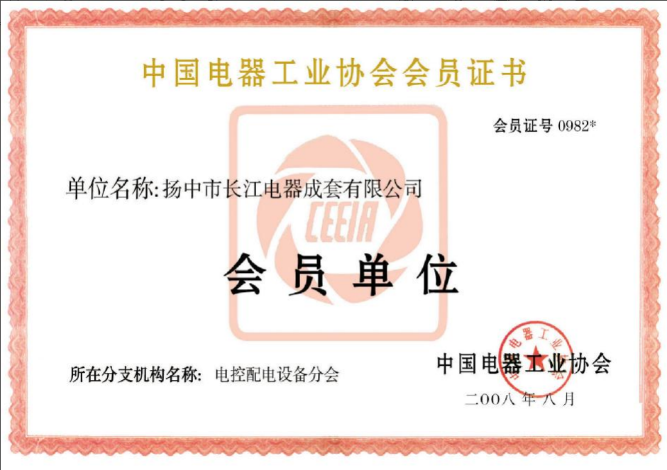 中國電器工業(yè)協(xié)會會員證書 -