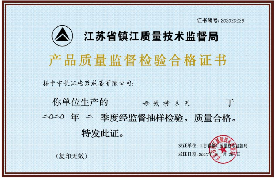 母線槽產(chǎn)品質(zhì)量監(jiān)督檢驗合 -
