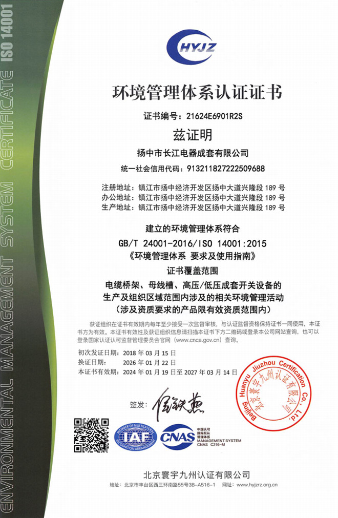 環(huán)境管理體系認(rèn)證證書 -